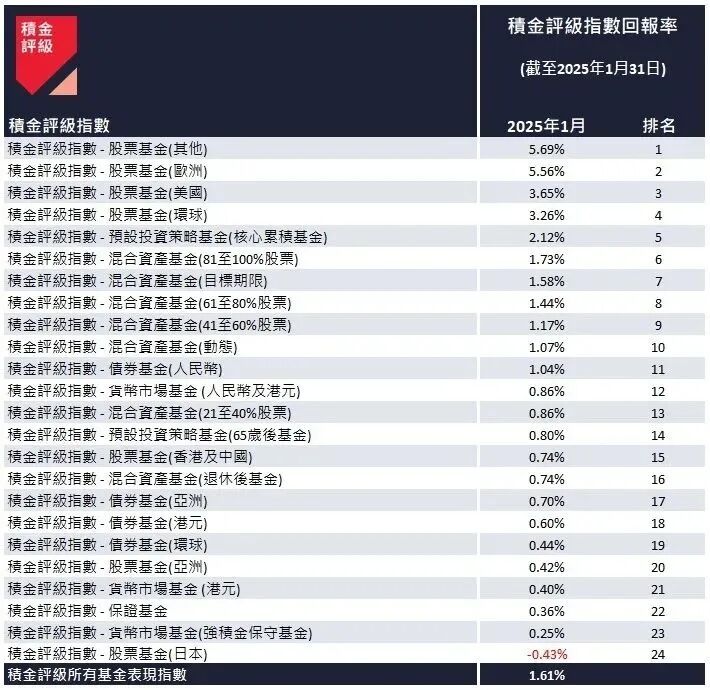 根据香港强积金独立评估机构积金评级的最新数据显示: