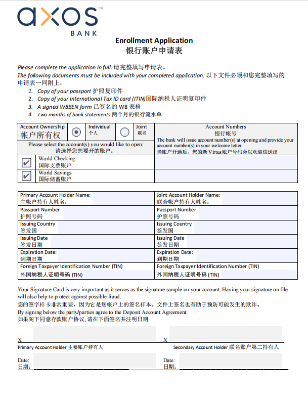跨境&币圈必看!内地远程开立「美国Axos Bank」账户!还享高达3.8的活期利率!美国 Axos Bank ![]() 跨境商家和币圈的朋友有福了! 近来,除了大家熟知的贝森银行(Bison Bank),美国 Axos Bank 也逐渐进入越来越多用户的视野。 和贝森银行一样,Axos Bank 对数字货币领域表现出了较高的友好度,无论是美股出入金、外币储蓄,还是跨境收付款,都能较好地满足需求。 更重要的是,它旗下全球支票账户支持非美国居民申请,即便您没有美国身份或长期签证,作为中国大陆用户也有机会成功开户,实现更便捷的全球资金调度。 它不仅是一家拥有实体网点的传统银行,更具备互联网银行的高效与便捷,同时享有美国联邦存款保险公司(FDIC) 的保障,每个账户最高承保额达25万美元,让您的资金存放更加安心。 本文将从银行背景、开户流程、账户优势、账户资费四大维度,为您深度解析Axos Bank个人开户全攻略。 ➡ 记得关注「中界海外」并设为星标,每日为您分享境外小知识~ ![]() ![]() ![]() 推荐阅读 ![]() ![]() ![]() ![]() ![]() 中界海外 · 企业网址 ![]() www.zjhw2020.com ![]() 中界海外,您远航世界的一站式海外服务平台。 专注为您提供海内外公司注册、离岸账户开设、审计、税务及财务咨询、国际金融牌照、国际知识产权、跨境电商、VIE架构、ODI境外投资备案、37号文等,为客户量身定做优选的企业发展方案~ 更多关于境外服务的专业解答,欢迎关注“中界海外”,给您最专业的建议、最用心的服务~ ![]() 微信公众号 | 视频号 | 抖音 | 微博 | 知乎 | 小红书ID 【中界海外】 ![]() ![]()
