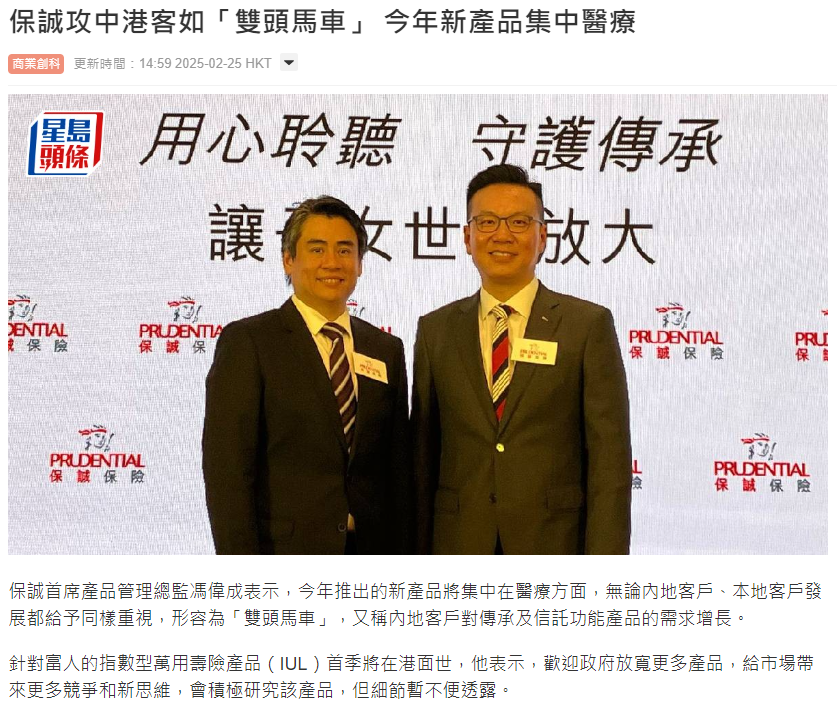 保诚、富卫、永明:针对富人的指数型万用寿险产品(IUL)将在港面世!![]() 数型万能寿险(IUL)因其独特的“保障+投资”双重属性,备受青睐。 之前内地人士只能配置到美国、百慕大和新加坡的IUL产品,如今香港IUL面世,真是很大的福利! ![]() ➡ 记得关注「与众家族办公室」并设为星标,将为您持续更新优质文章~ ![]() 保诚首席产品管理总监冯伟成表示,针对富人的指数型万用寿险产品(IUL)首季将在港面世。 他表示,欢迎政府放宽更多产品,给市场带来更多竞争和新思维,会积极研究该产品,但细节暂不便透露。 ![]() 冯伟成又称,内地客户对传承及信託功能产品的需求增长。 所以全新的保诚信守明天多元货币计划一经推出,便火爆全港 ![]() 富卫香港及澳门首席产品总监余栢坚表示,指数型万用寿险可满足高端客的理财及传承需要,富卫将力争成为首批推出该产品的保险公司,并会在多渠道进行销售。 ![]() 具体推出时间并未透露,但是其**市场竞争力的盈聚天下首先计划以市场领先的货币种类,丰富多元的供款年期,高效灵活的提取功能,长期稳健的分红兑现,成为内地中高净值客户竞相追逐的“**爆款”! ![]() 永明金融行政总裁林嘉言表示,针对富人的指数型万用寿险产品(IUL)首季将在港面世。 林嘉言称,永明亦一定会发展,要等待保监局发出通函指引后才决定,会儘快同业界做好“这块饼”,公司在新加坡推行类似产品 ,并且做得很好,相信同样是成熟市场的香港,对相关产品的需求亦大。 他表示,公司的该产品在新加坡已经发展得比较成熟,资产负债管理(ALM)等基建式准备已经做好,而最终产品的设计仍要跟随保监局的规定,虽然新加坡、香港两地有关规矩不同,但相关专家都能来港帮助产品更快发展,希望成爲业界前几名推出产品。 ![]() 要知道,目前市场很热销的万年青星河尊享计划已经风靡了很久 ![]() 2025绝对是港险市场的重大变革大年。 香港传统保险以分红储蓄险为主,产品类型单一化,收益依赖保险公司投资能力且保证利率低(0.5%),IUL的透明收益机制(挂钩公开指数)填补了差异化需求。 IUL“上有封顶,下有托底”。被公认为是资产传承和养老规划的必要工具。 ![]() IUL与香港分红储蓄险的差异 1、收益确定性 IUL收益直接挂钩公开市场指数(如标普500),历史数据透明;而分红险收益依赖保险公司投资能力,保证利率仅0.5%,非保证部分存在不确定性。 2、风险偏好匹配 IUL适合希望“保本+分享市场增长”的投资者;分红险则更适合接受较高波动以换取潜在高回报的客户。 香港保险市场成功推出IUL,意味着不仅能填补本地高端保险市场的空白,其保底机制、税务优势及灵活性使其成为高净值客户资产配置的新选择。随着更多产品落地,香港有望在亚洲保险竞争中进一步缩小与新加坡的差距,在财富管理市场上掀起一阵新浪潮! 对于有兴趣的投资者来说,不妨结合自身的财务状况和投资目标,综合评估是否适合配置IUL产品。 如果你对香港保险感兴趣,可以扫描下方二维码进行咨询哦~ ![]() 注:文章部分来源香港保险圈,转载仅作分享,侵删 ![]() 如果您想了解更多最新消息或疑难,欢迎长按识别并添加上方二维码详询哦,小编将为您一对一解答~ 好啦,以上就是今日分享啦!关注【与众家族办公室】,给您最专业的建议、最用心的服务~ ![]() 推荐阅读 ![]() ![]() ![]() ![]() ![]() ![]() 点个“在看”不失联