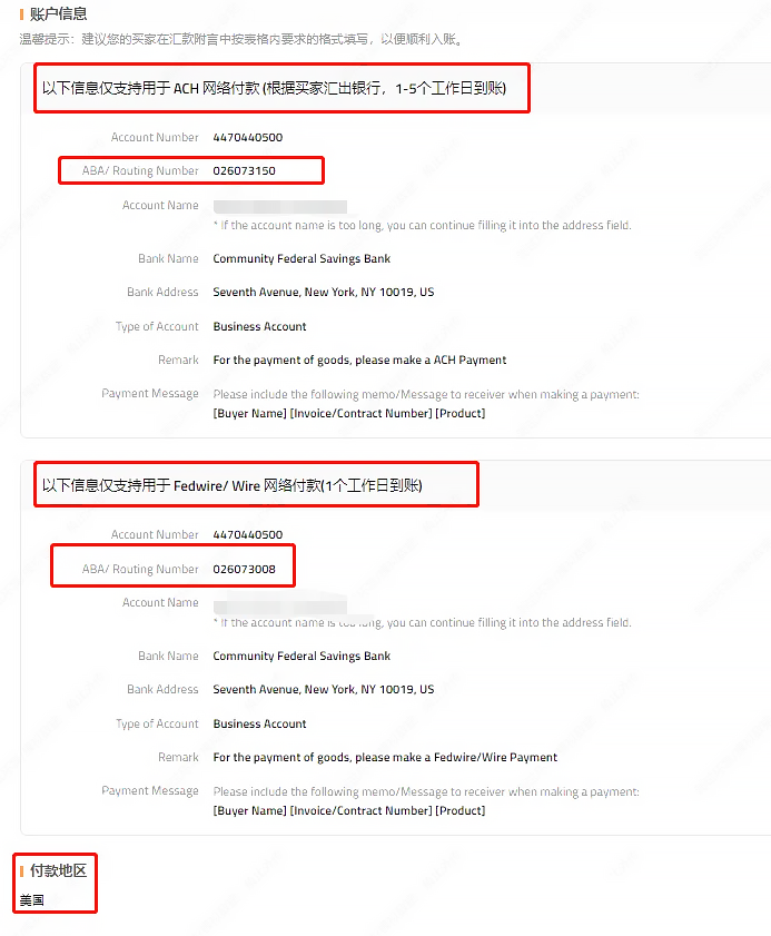 汇款到美国:SWIFT Code + ABA Number + 账号