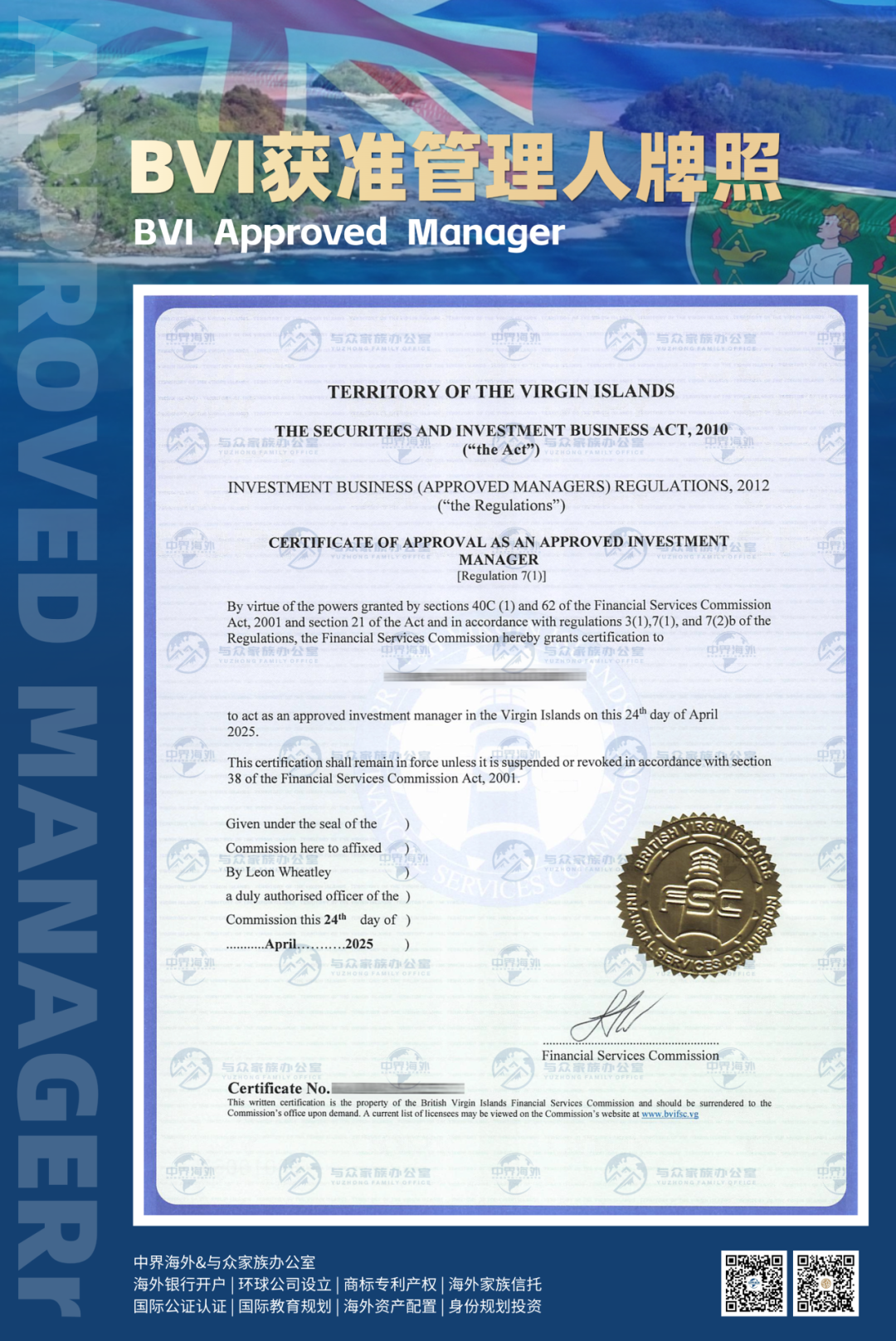 2026年BVI获准管理人牌照申请秘籍:如何快速获批并合规经营?BVI获准管理人牌照 BVI Approved Manager 图 | 我司BVI获准管理人牌照申请实例 在全球对冲基金和私募信贷的版图中,英属维尔京群岛(BVI)一直是不可或缺的一环。对于初设的基金管理团队或小型基金发起人而言,如何在合规与成本之间找到平衡点,是决定基金设立成败的关键。 BVI金融监管委员会(FSC)推出的获准管理人制度,因其申请流程相对快捷、监管要求适度,被业内誉为离岸基金管理的“轻骑兵” 。 本文将结合2026年最新监管动态与实操费用,为你深度拆解BVI Approved Manager牌照的申请逻辑、资料清单及后续合规义务。 ➡ 记得关注「中界海外」并设为星标,每日为您分享境外小知识~ ![]() ![]() ![]() 推荐阅读 ![]() ![]() ![]() ![]() ![]() 中界海外 · 企业网址 ![]() www.zjhw2020.com ![]() 中界海外,您远航世界的一站式海外服务平台。 专注为您提供海内外公司注册、离岸账户开设、审计、税务及财务咨询、国际金融牌照、国际知识产权、跨境电商、VIE架构、ODI境外投资备案、37号文等,为客户量身定做优选的企业发展方案~ 更多关于境外服务的专业解答,欢迎关注“中界海外”,给您最专业的建议、最用心的服务~ ![]() 微信公众号 | 视频号 | 抖音 | 微博 | 知乎 | 小红书ID 【中界海外】 ![]() ![]()