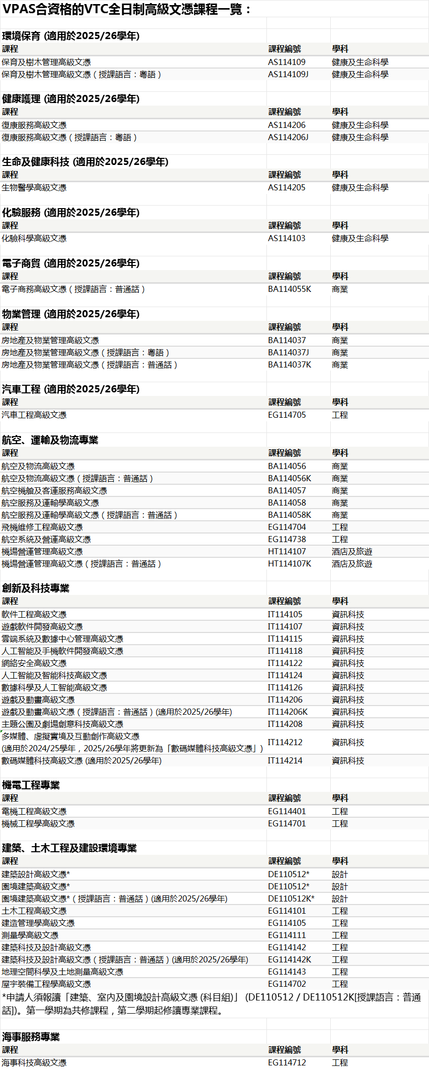 职专毕业生留学香港的捷径——VPAS!让普通孩子享受国际教育!低门槛拿香港身份!![]() 在当今竞争激烈且多元化的就业市场环境下,职业教育的重要性日益凸显,而香港的 VTC 项目在众多职业教育选项中闪耀着独特的光芒。 该项目所推出的职专毕业生留港计划 (VPAS) 是香港特区政府推出吸纳职专技术人才的措施,以应对香港经济转型和科技急速发展下的迫切人力需求。 此计划为内地高考生及大专以上学历的持有者提供了一个赴港工作+拿香港身份的难得机会,是当下低门槛赴港学习就业的新机遇! 据了解,该项目凭借其令人瞩目的超高就业率 — 超过 90%,以及**吸引力的可观年收入水平 — 毕业生年收入可达 30 万+,成为众多有志青年关注与向往的焦点。 ![]() 先跟大家讲一下VPAS是什么,以及它的背景是什么样的。 首先是2023年10月25号,是李家超特首去提出了VPAS计划。 它的大背景是什么呢? ![]() 其实在高才通推出之前,香港已经出现了严重的人才流失现象,流失程度是多少呢?大概是19到20万人。 这个数字里面,包含了很多有专业技能的专业人才,他们当时是拖家带口去到了海外,造成了香港本土的企业跟境外的企业,人才的严重流失。 所以在2022年时,港府开启了一系列的抢人政策,即推出了一个高才通计划,以及大力推广优才计划的动作。 那为什么2023年10月份,又推出VPAS计划呢? 是因为,港府发现,之前无论高才或优才,这些计划全都是针对中高端人才的,并不是针对专业人才和中基层岗位的。 而这些高端人才,说实话对香港本土就业来说,多少有点的水土不服,完全没有办法快速补充香港专业人才流失的缺口。 所以高才推出的1年后,在2023年10月,港府推出了VAPS计划,全称叫「职专毕业生留港计划」。 想着用这个计划来快速培养香港紧缺职业的人才,解决香港专才人才紧缺的问题。 简单来说,VPAS计划主要有以下内容: ● 两年试行计划 (2024/25及2025/26学年入学) ● 对象为非本地学生 (包括内地及其他国家/地区的学生) ● 来港就读合资格的VTC全日制高级文凭 (两年制) 课程 (涵盖12个技术行业共34个专业课程) ● 毕业后可申请VPAS签证以留港寻找工作 ● 其后须全职从事与课程相关的技术行业 ● 只要继续在港受聘,并累计居港满七年后 (包括兩年学习、一年寻找工作及其后四年工作),可申请成为香港**性居民 ![]() 也就是说,读VPAS课程有两种选择,一种是选择继续深造,获取本科学位,进而获取硕士学位,然后留在香港;另外一种是VPAS课程毕业后直接就业,然后留在香港。不管同学选择哪一种,都拥有光明的未来~ ![]() 而这个计划,给到了谁去实施落地呢,就是一个香港官方机构,叫VTC。 ![]() VTC的全称叫「香港职业训练局」,于1982年成立,是香港最具规模的职业专才教育机构,设有13间机构成员/院校,每年为约20万名学生提供全面的职前及在职训练,颁发国际认可的学历资格,多项课程更通过评审及获得专业认证。它平均的毕业生就业率,常年保持在90%以上。 而VTC还是一个全球的合作机构和组织,属于港府公办机构,它跟全球100多个国际的院校,常年保持着紧密的合作交流关系。 它旗下有14个相关的培训院校机构,其中有一半是可以发文凭的, 每年为整个香港提供20万人次的学历、相关教育的培训。 每年VTC和海外的合作院校交流频次都在4000次左右,每年大概有4万名全日制学生在VTC不同的院校学习。 而且它们的学科基本涵盖了市面上主流的7大学科,100多个高级文凭,这些文凭是被海外很多院校认可且同步的。 ![]() 可以这样说,VTC旗下的14个院校,基本涵盖了从高级文凭到学士、 硕士、MBA一系列的文凭课程,相当于内部可以自运行。 打个比方,你在VTC读完两年高级文凭,既可以直接在香港本土升学,还可以同步升学到澳洲、加拿大、英国等英联邦认可高级文凭的国家就读,它是一个全球化的文凭体系。 虽然,高级文凭在咱们内地的学历架构里是没有这个level等级,但在海外英联邦体系里,是一个全球化比较普遍的一个学历level。 2023年3月,VTC于深圳成立内地首个运作中心(中心)— 职专教育服务(深圳)有限公司。中心设于深圳市南山区创智云城的粤港澳大湾区特色职业教育园区,旨在为粤港两地搭建职专教育交流平台,透过各式各样的交流和合作项目,协助更多年轻人了解国家发展,提升专业技能。这是VTC在内地发展的重要基石,冀为大湾区乃至内地培养更多优秀的技能型和应用型人才。 ![]() 图源 | 网络 ![]() 01 申请要求 (1)凭学历成绩申请入学 ● 学历要求满足以下其中之一: ① 应届广东省/浙江省普通高中学业水平考试(春季高考)成绩:学考总分(包括英语及其他科目)取得满意成绩 ② 普通高等学校招生全国统一考试(高考)成绩:高考总分(包括语文及英语)取得满意成绩,往届高考成绩亦可申请 ③ 持有内地更高学历,例如大专、大学(本科)等 ④ 海外/国际高中学历 ● 语言要求: 高考英语80/春季高考英语B级/托福61/雅思5 (2)凭工作经验申请入学 申请人须在香港、内地或境外取得丰富的与报读课程相关工作经验或资历: ● 申请人须提交个人简历和相关文件以证明其在行业的成就和贡献(如工作证明、雇主推荐信等); ● 持有认可的中文及英文考试成绩,或通过由VTC主理的中文及英文能力评估 注:持有内地高级技工学校、技师学院毕业证书、⼤专、⼤学等学历亦可凭相关⼯作经验申请⼊学。 ![](